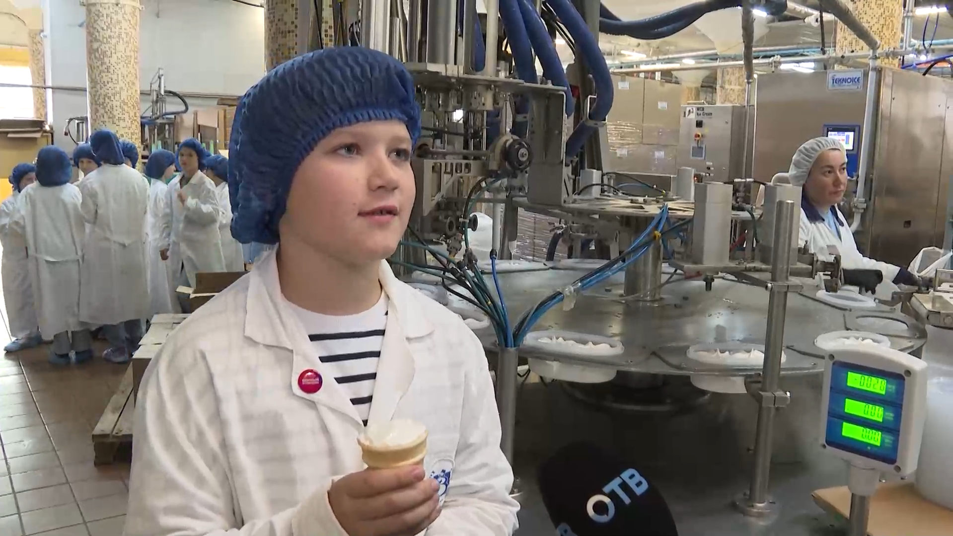«Ну а после того, как ребята узнали технологию производства любимого десерта, у них появилась уникальная возможность попробовать еще не замороженное мороженое прямо с конвейера. Ммммм, какое вкусное», - корреспондент Кирилл Бажанов.
