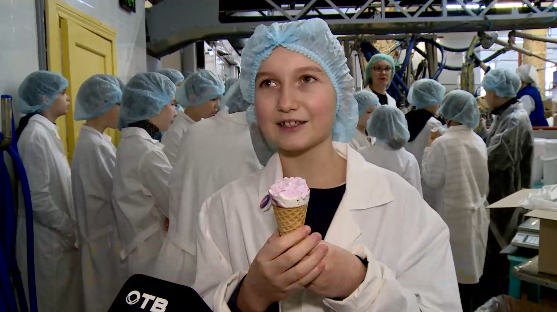 Экскурсия завершилась дегустацией мороженого прямо с конвейера.